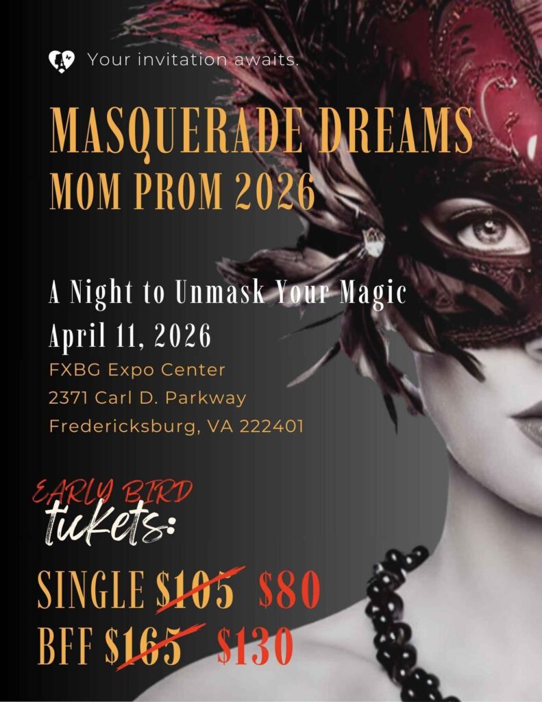 Gwyneth’s Gift is hosting Fredericksburg’s annual Mom Prom at Fredericksburg Convention Center on April 11, 2026. Fredericksburg’s Mom Prom will feature a signature drink, hors d’oeuvres, live entertainment, and a whole lot of dancing. Dress your best – anything goes at this ultimate “ladies-only” night out for charity.